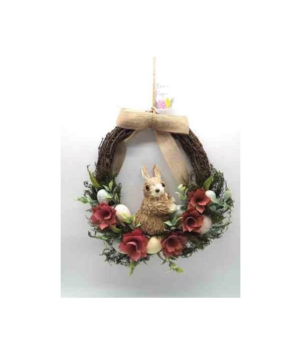 CORONA RAMI C/CONIGLIETTO D34 CI33396 DECOR.FIORI+UOVA, APPEND
