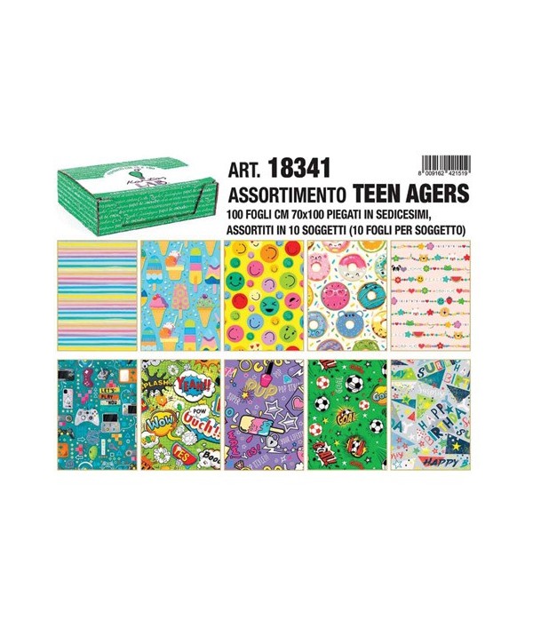 CARTA REGALO 70*100 ASSORT. TEENAGERS KARTOS 18312 ex 18-263 ex 18-256 SCATOLA 100 ff